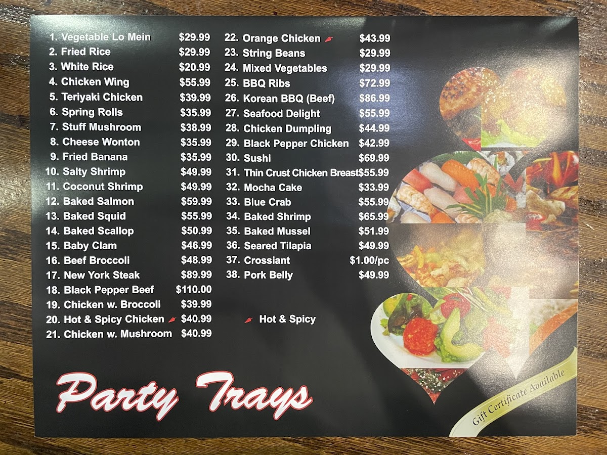 The lunch menu, available Monday through Friday from 11 AM to 4 PM, features a robust selection perfect for a midday escape. For just $17.59, you can indulge in mouth-watering dishes such as the succulent Orange Chicken, Teriyaki Chicken, and a variety of fried rice that captures the essence of Asian street fare. Children eat for just $1.39 per age, making it a family-friendly outing.