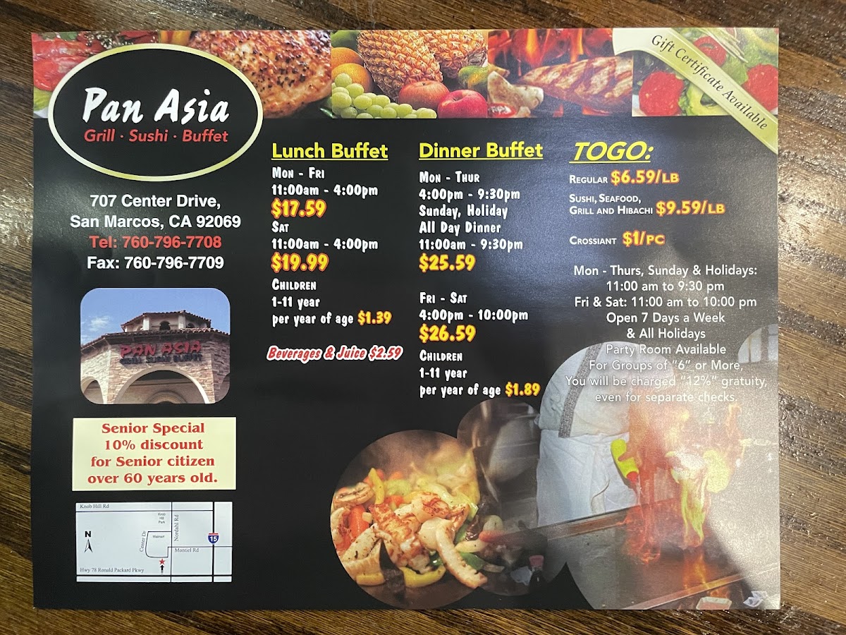 Nestled in the bustling center of San Marcos, Pan Asia Buffet offers an expansive culinary journey through Asian cuisine that will surely tantalize your taste buds. With its vibrant atmosphere and diverse menu, it’s a dining destination for both casual meals and special gatherings.